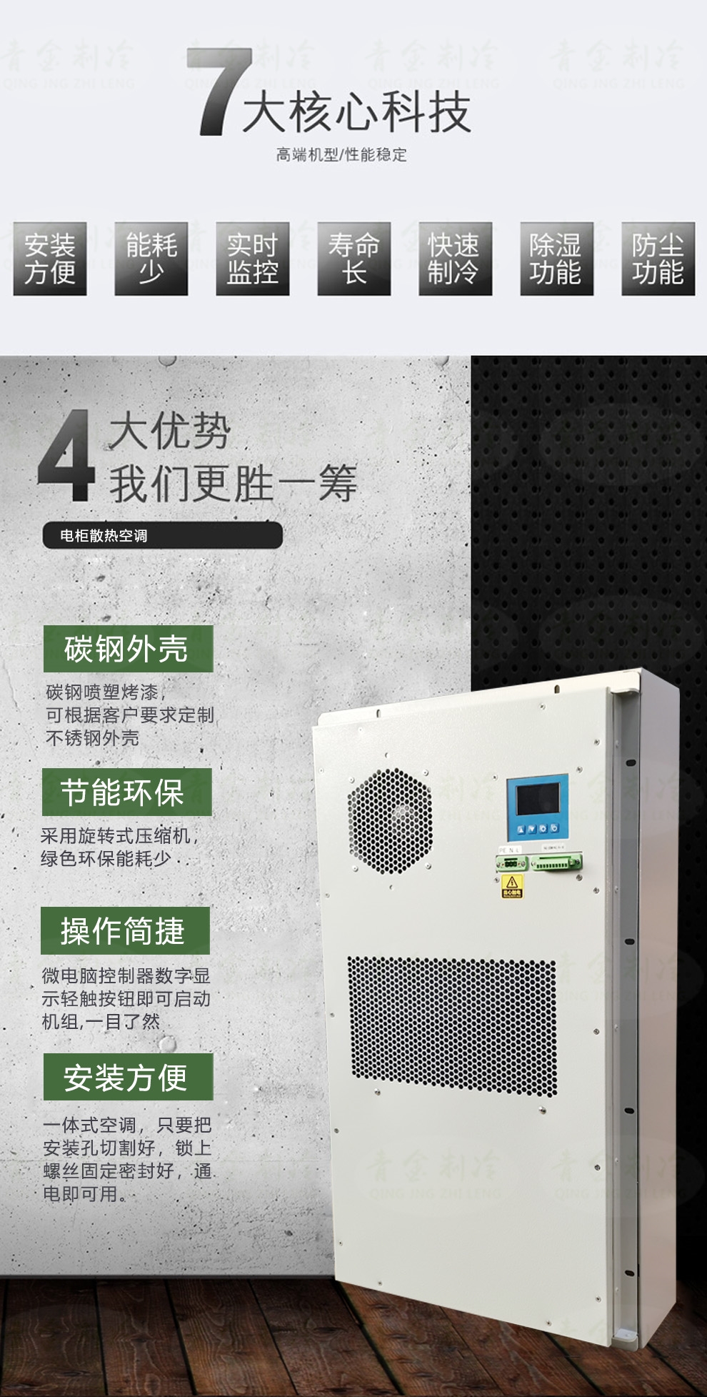 电柜用空调有什么特点呢?跟着青金制冷空调厂家,一起了解下电柜空调的特点吧: